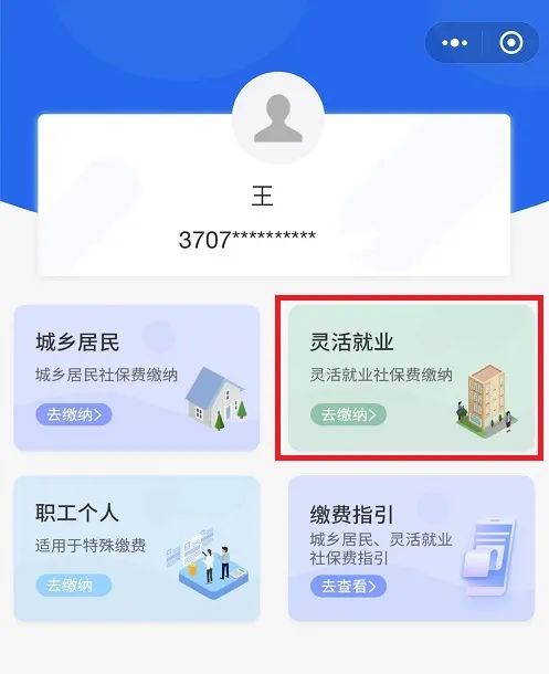 ②关注“潍坊就业”微信公众号,选择“业务办理—灵活就业人员代理缴费”跳转“山东税务社保费缴纳”小程序。
