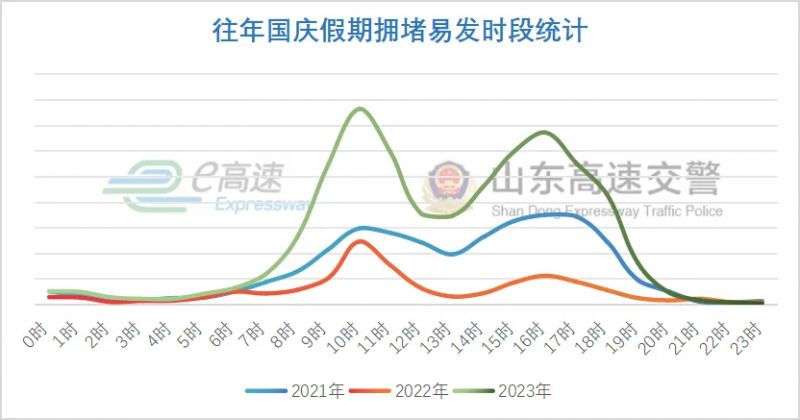 据2021至2023年国庆期间道路缓行时段分布显示,假期每日9时至18时仍出现道路缓行明显,且10时、15时、16时、17时是道路缓行的高峰值。