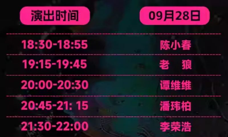 演出阵容:李荣浩、潘玮柏、谭维维、陈小春、老狼