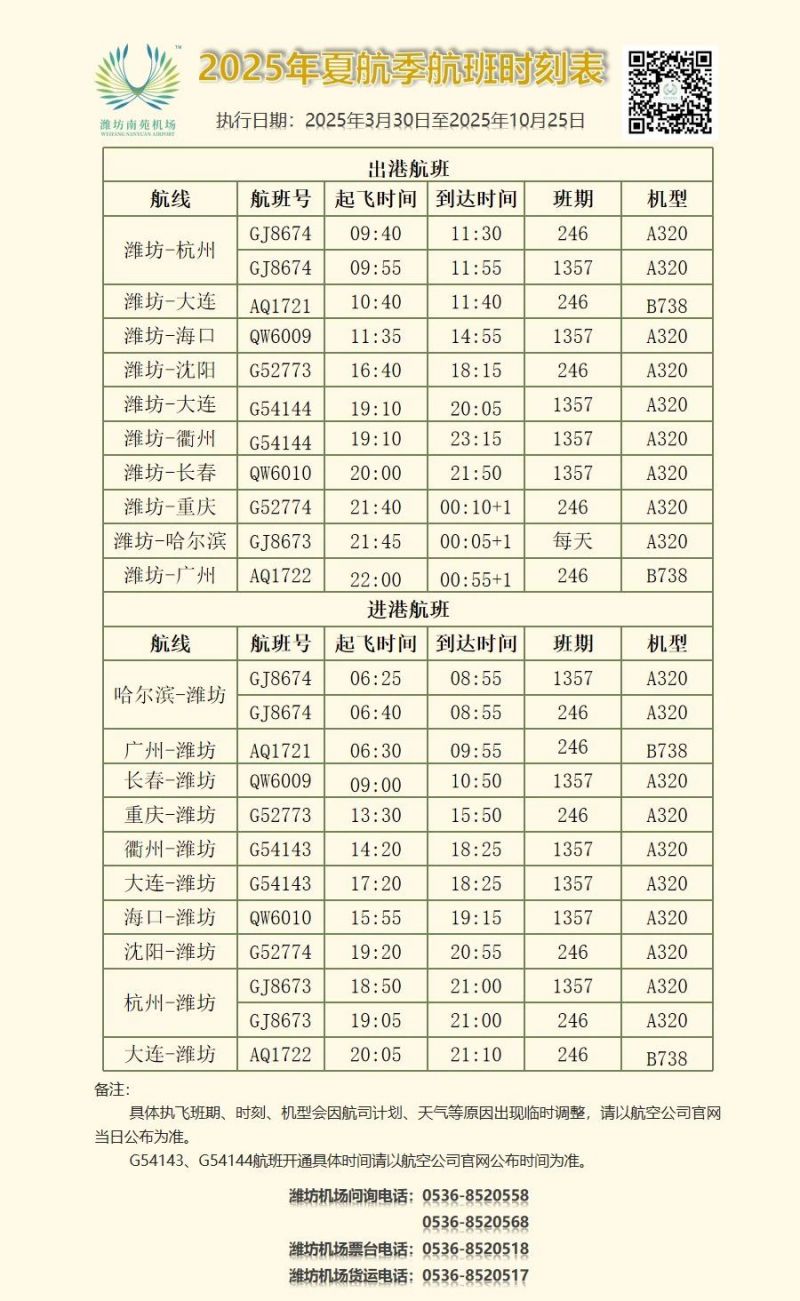 为了获取2025年潍坊机场夏航季的航班计划,您可以关注以下途径: