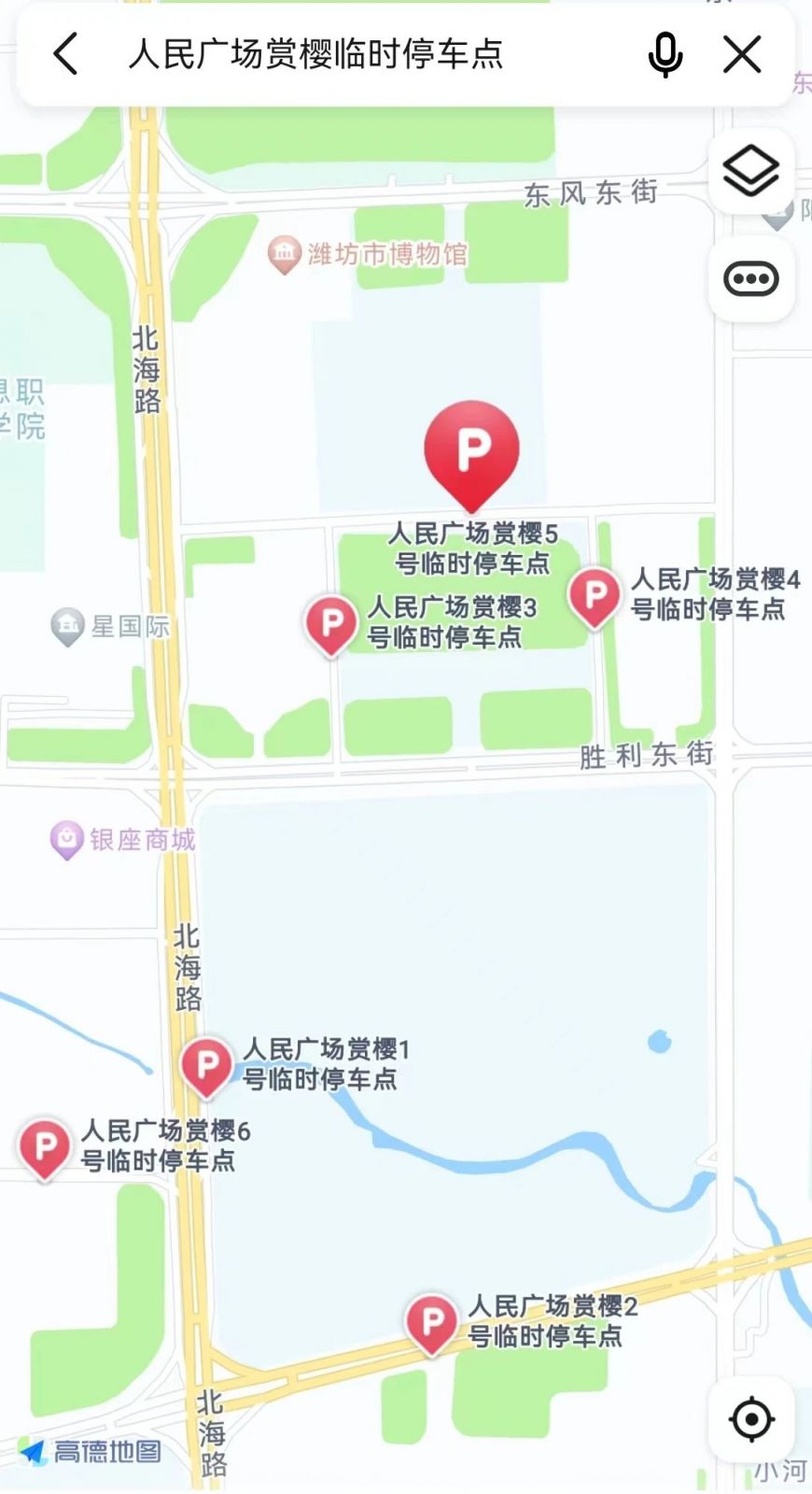 "赏花地点:" - 潍坊市人民广场:广场内设有樱花种植区,是市民赏樱的热门地点。
