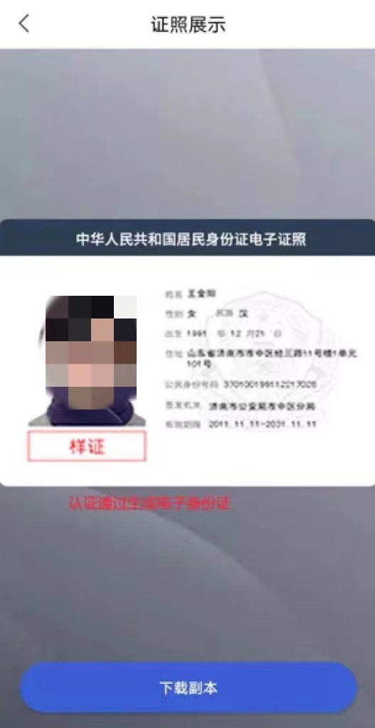 第三步:身份认证通过后,即可生成与本人实体有效身份证信息完全一致的电子证照,进行“亮证”。